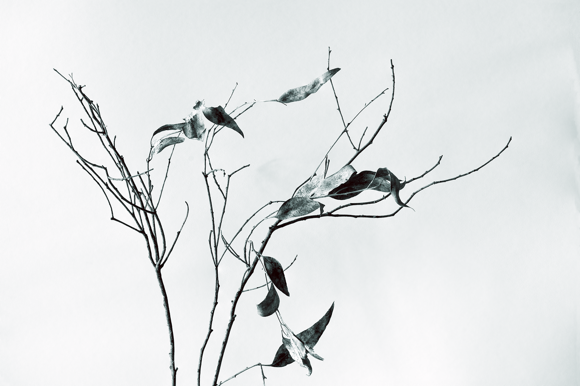 Hojas secas de invierno viradas al azul